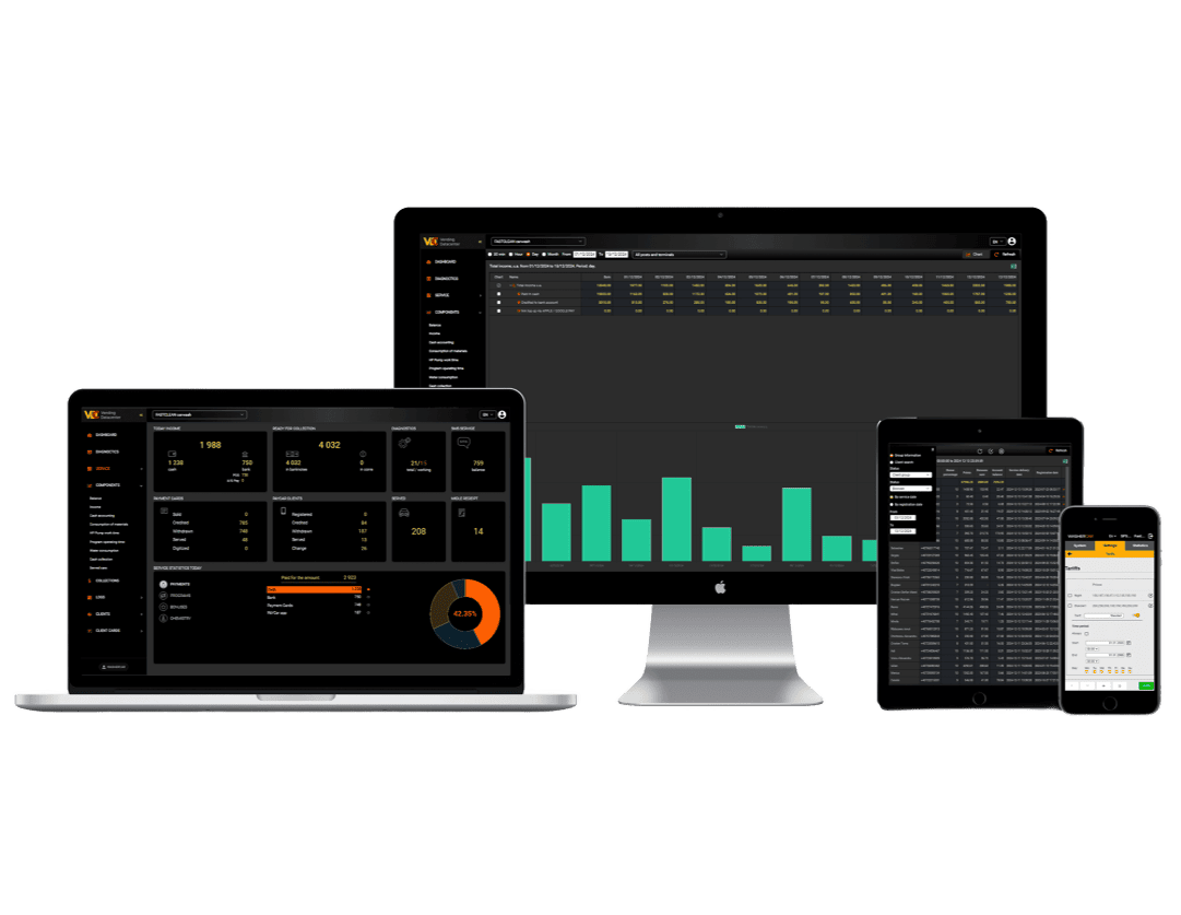 Online monitoring allows you to track the work of self-service stations in real time - you see the load of each station, the current state of the equipment, the number of transactions, chemical residues and other key parameters. This gives you full control over the situation at the car wash even from a distance. You always know what is happening, you can quickly respond to any deviations and make informed management decisions - while in the office, at home or in another country.